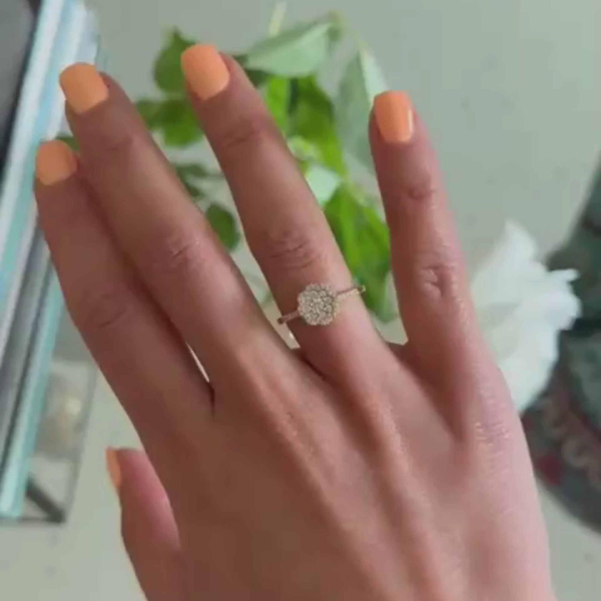 Este anillo de oro amarillo 14k con diamantes en micro pavé es una pieza que destaca por su belleza, ideal para quienes aman los detalles que hablan por sí solos.