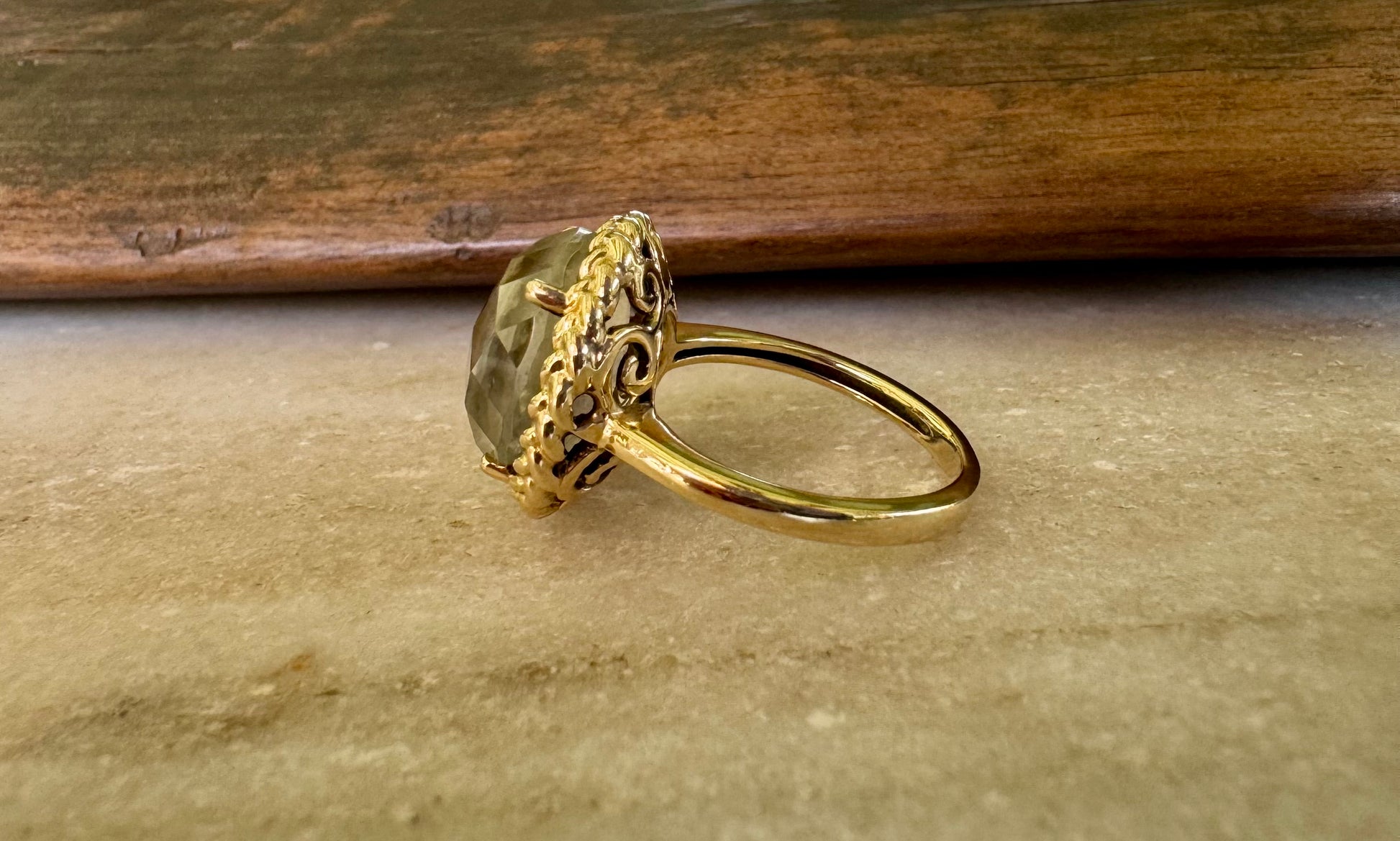 Anillo de Oro Amarillo 14k con Amatista verde