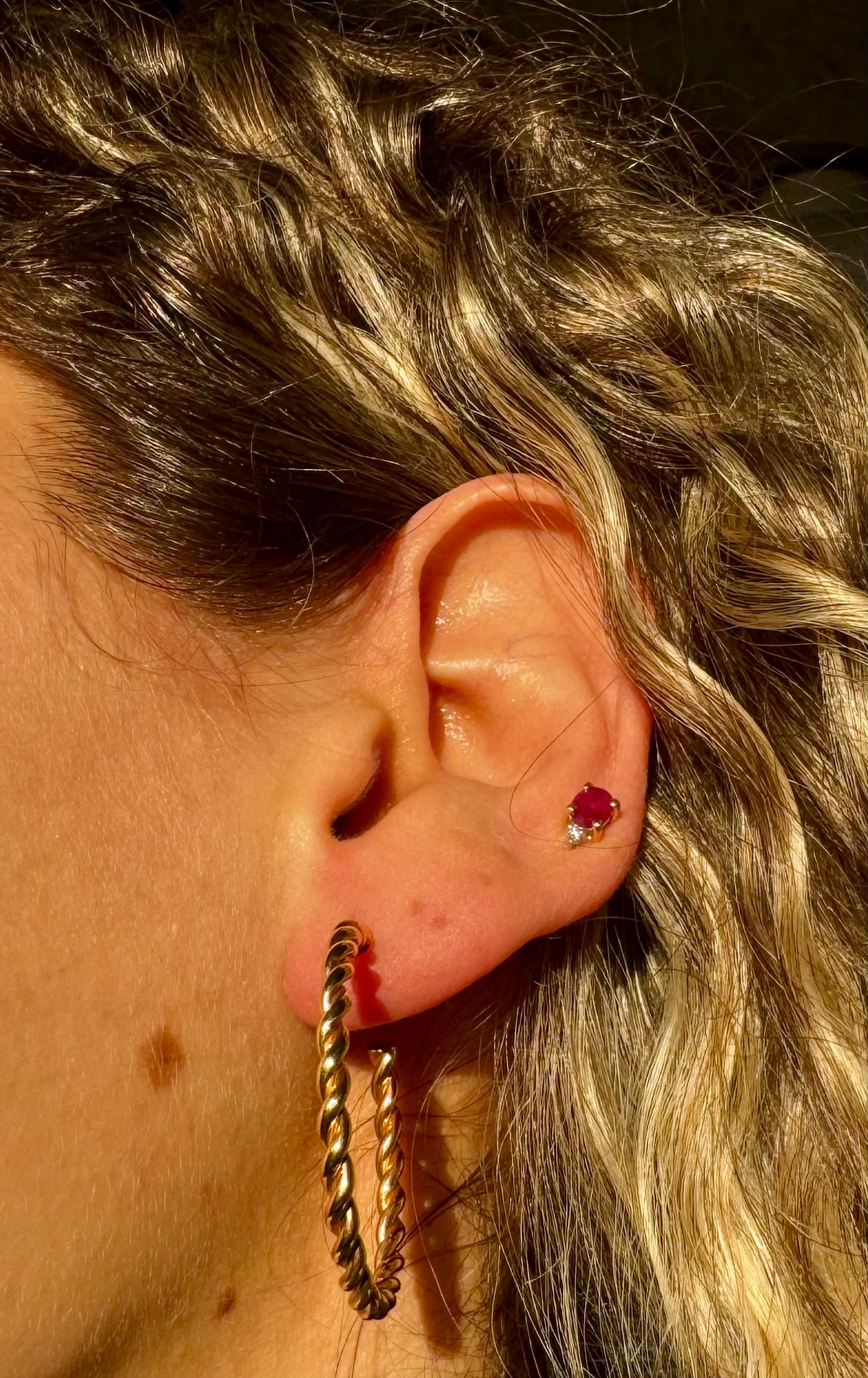 Sumérgete en el encanto de estos aros tipo argollas entorchadas, trabajados con detalle para destacar por su belleza inigualable. Fabricados en oro 10k y con un peso total de 2,34gr, son una pieza única de nuestra colección curada.