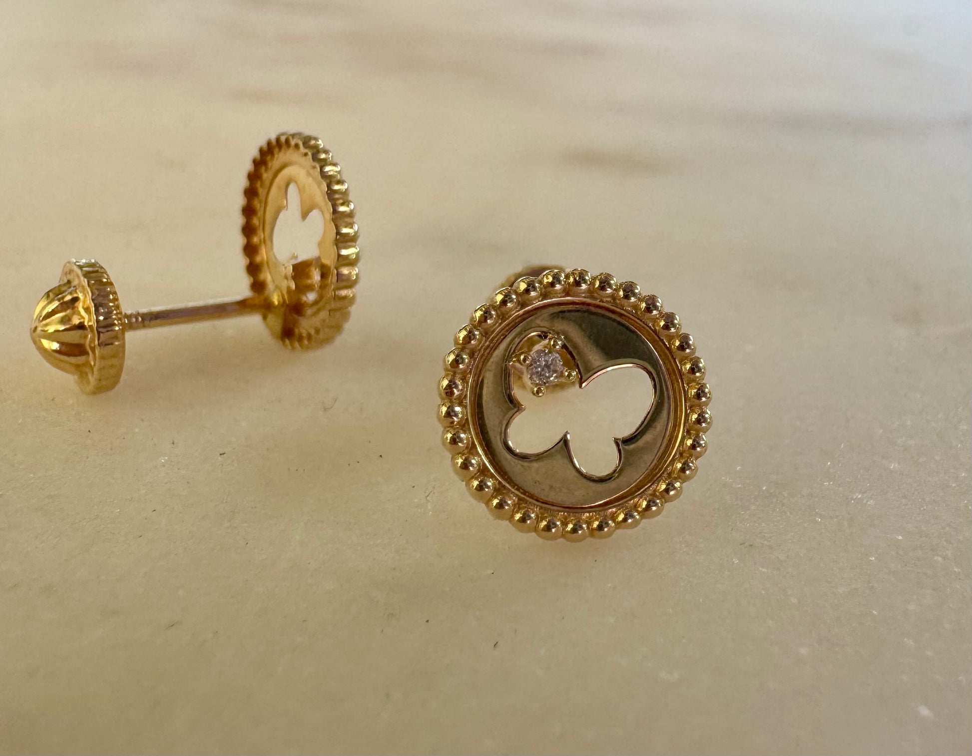 Deja que estos aros de mariposa con un circon en oro amarillo 14K iluminen tu día con su diseño delicado y elegante. Cada pieza es cuidadosamente seleccionada para destacar por su belleza y es perfecta para cualquier ocasión. Con una medida de 9mm, su tope de seguridad asegura un ajuste cómodo y seguro.